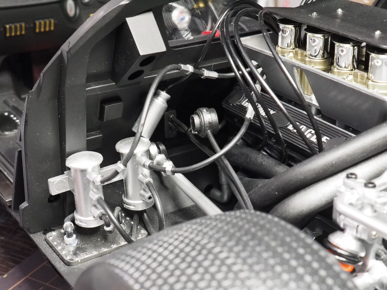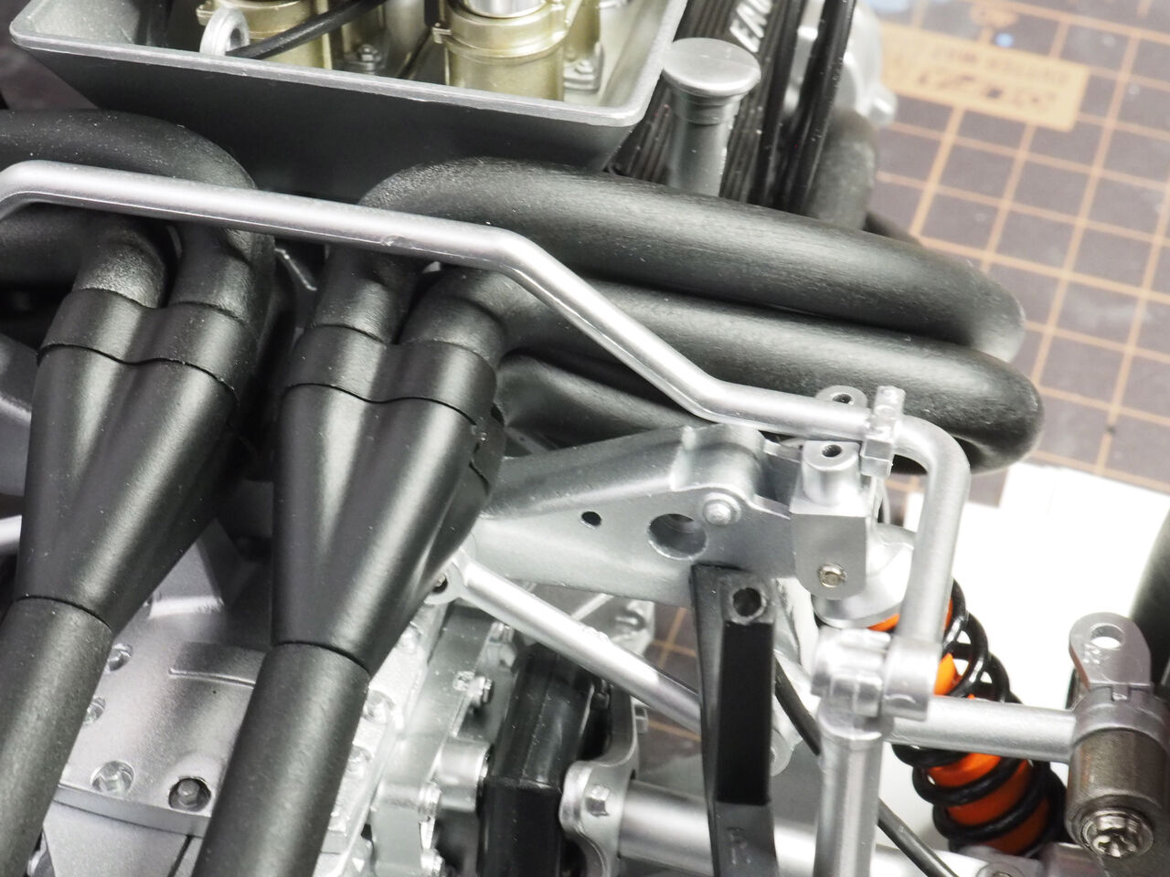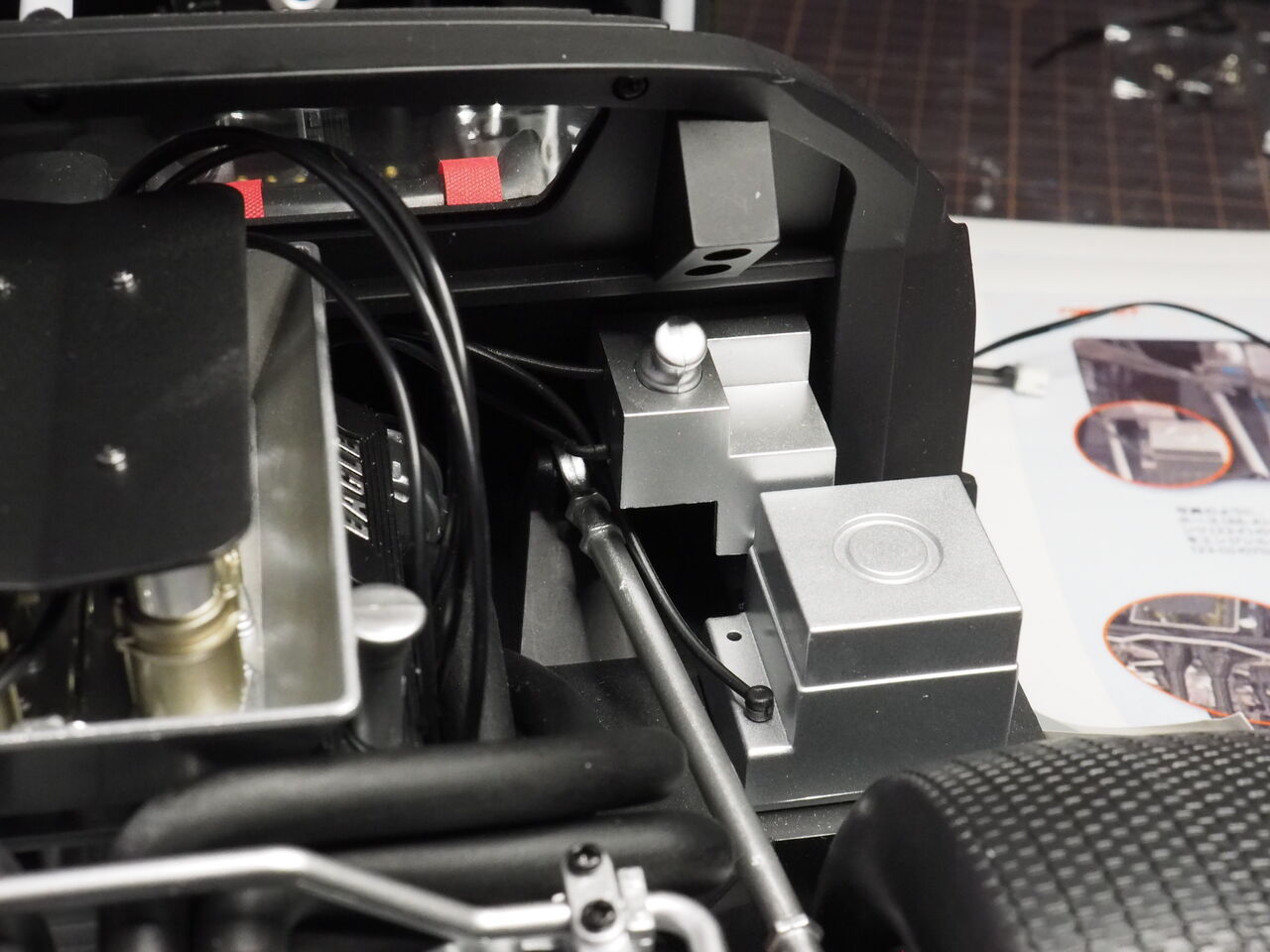 といってもついてきたパーツは使いません。エンジンについていたコード類をシャシー側に取り付けるだけです。エンジン左側で3箇所。