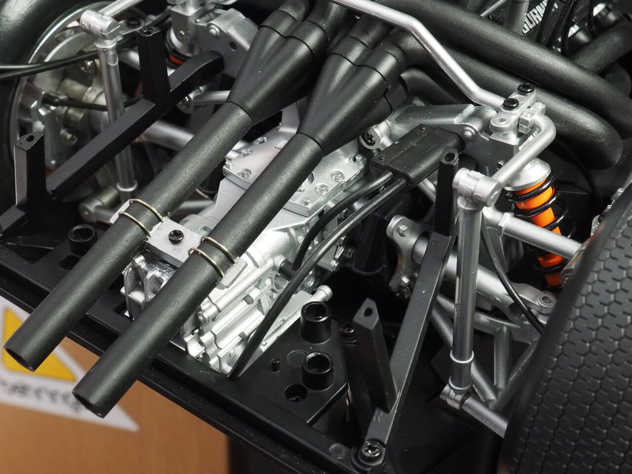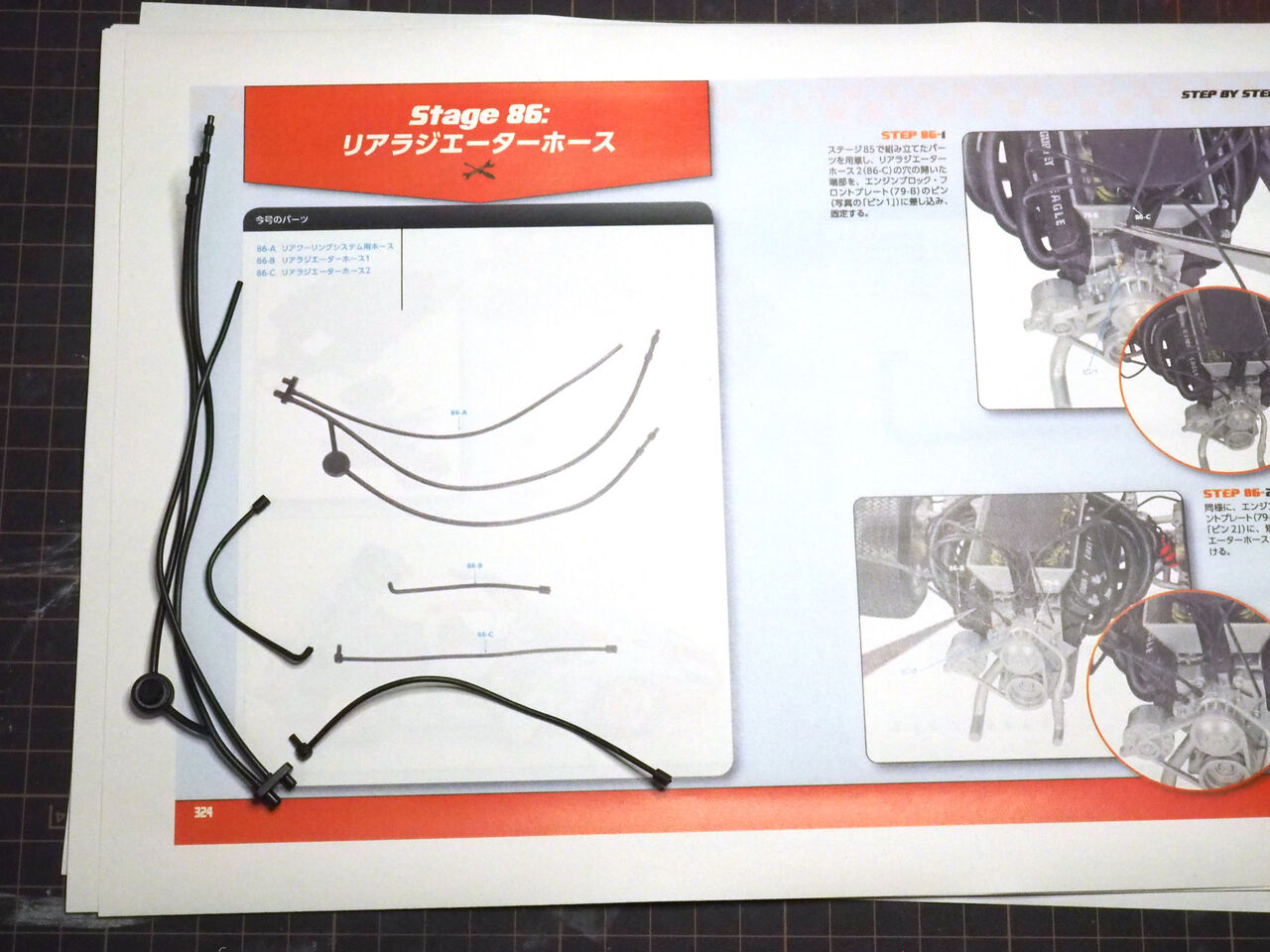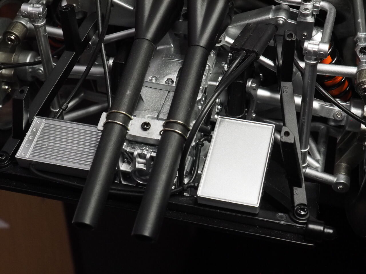 といってもついてきたパーツは使いません。エンジンについていたコード類をシャシー側に取り付けるだけです。エンジン左側で3箇所。