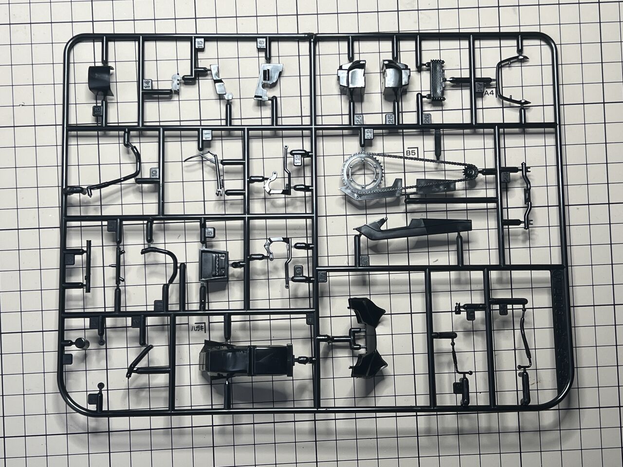 いわゆる旧車バイクはあまり作りません。これのチョイスはあるデカールが新発売されたことがキッカケです。感の良い方はピンとくるでしょう。さらにディスプレイ時にピッタリのお供も見つけました。