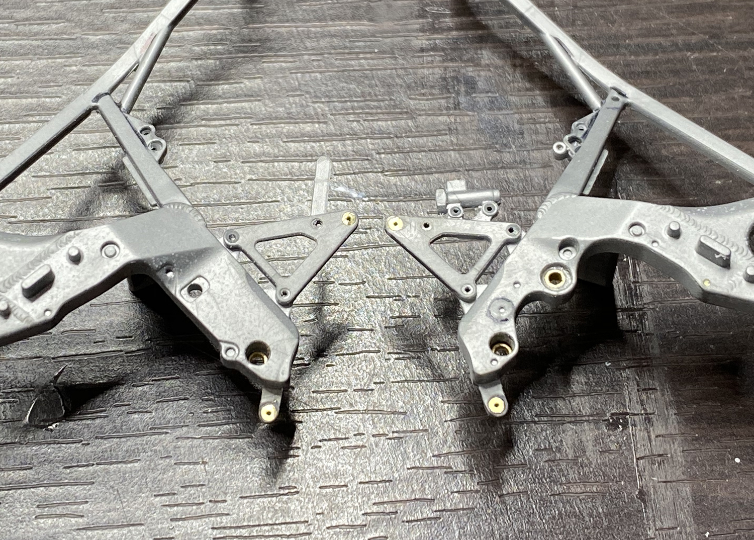 ここも真鍮に置き換え。タンクステーですね。左は加工済、右はこれから。