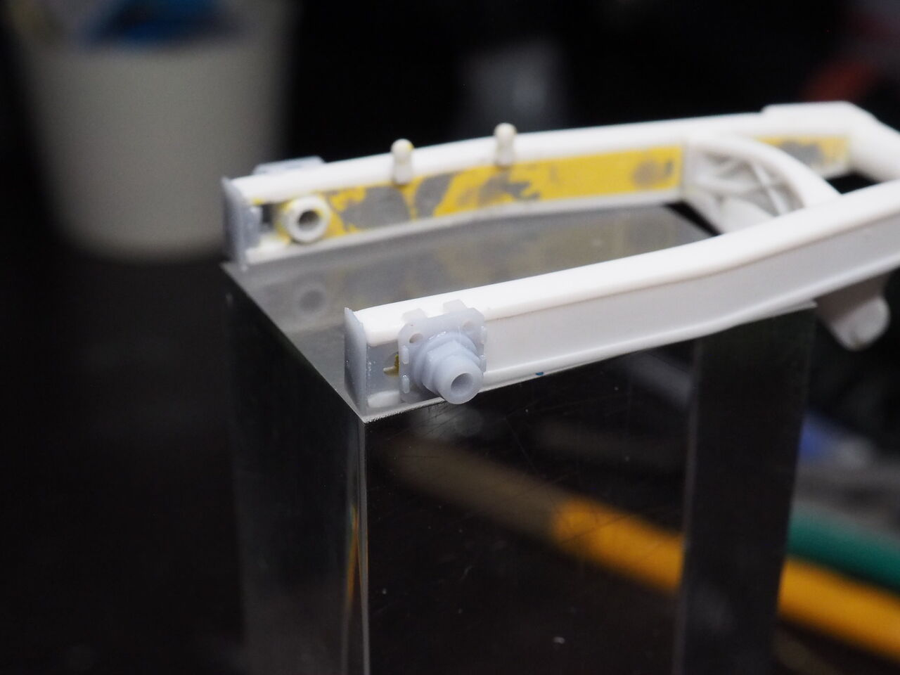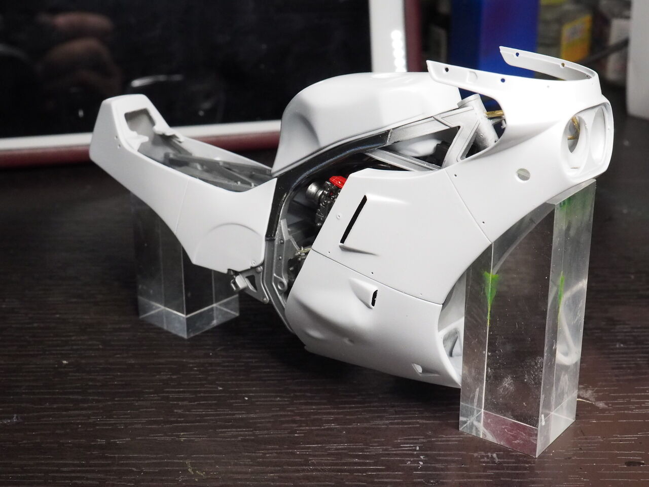 見えにくいですがボックスの前面になる部分。縁があまりに太かったので薄々にしてあります。カウルを外した時のディテールも考えないといけませんね。