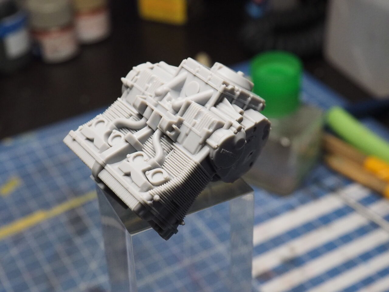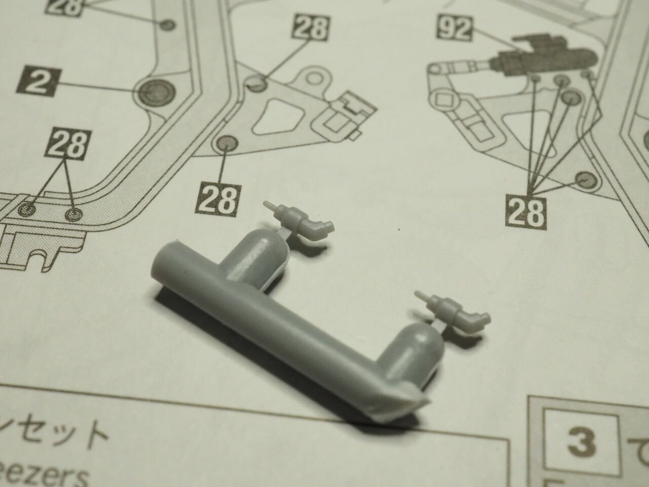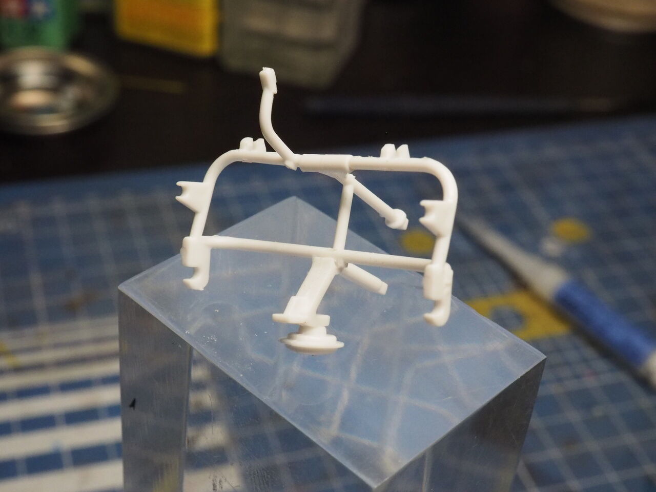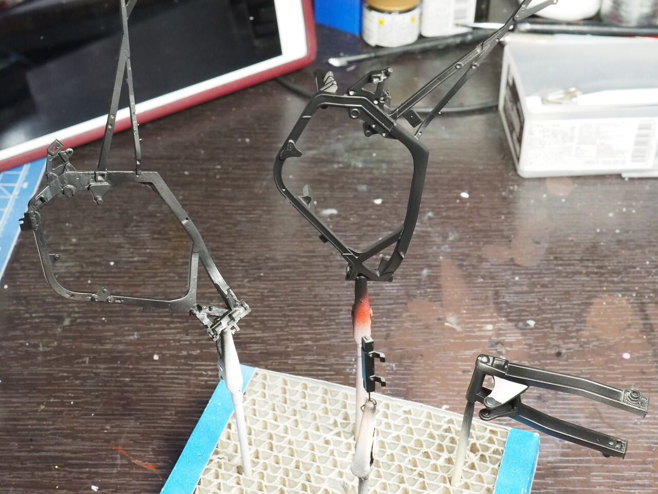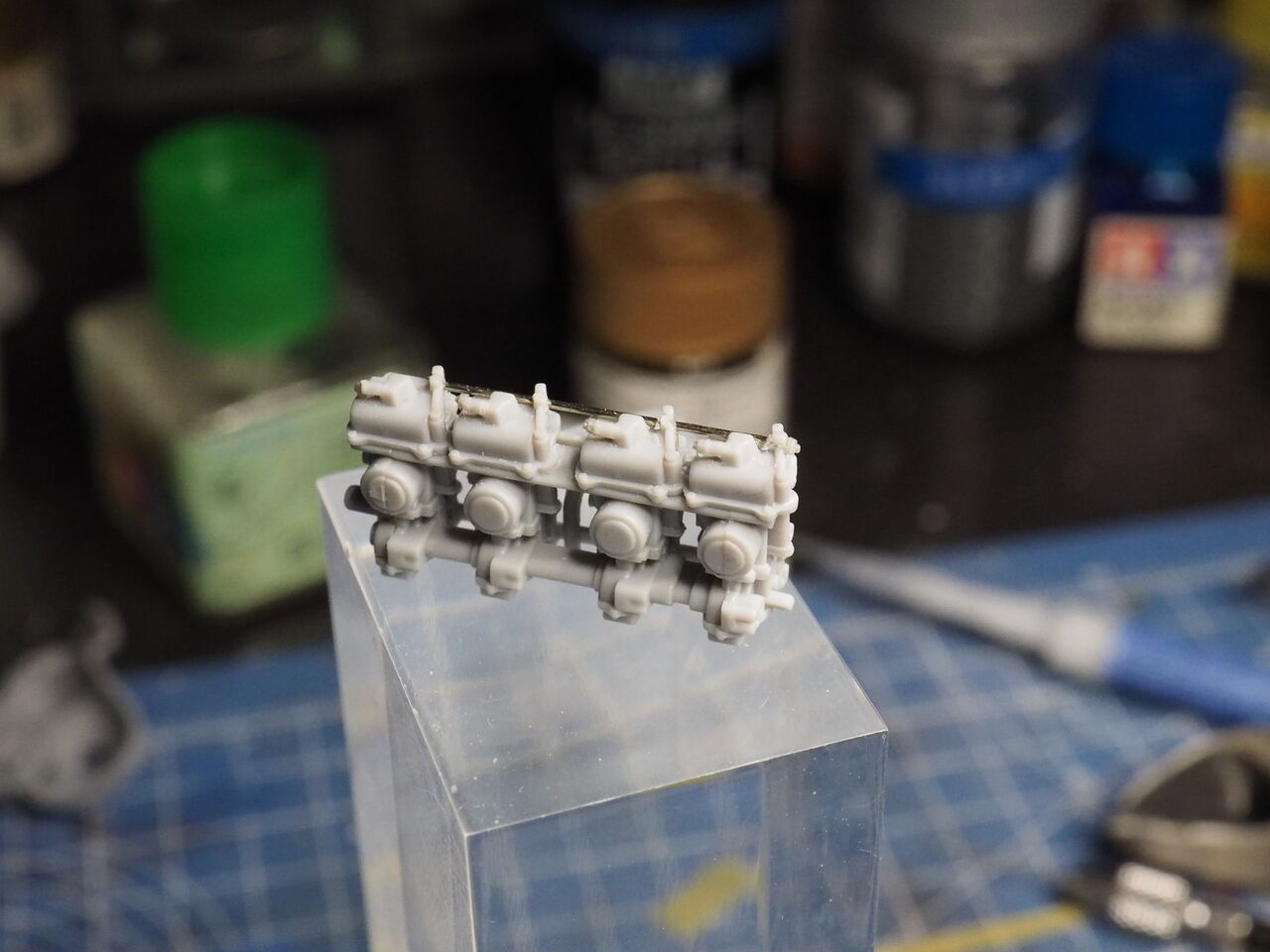 なかなかメカメカしていていいですね。ここまでこないとデカール貼りができません。まぁ白黒なのでマスキングとも思ったんですがよくよく見ると結構大変で・・・デカールでレタッチが定番ですかね・・・
