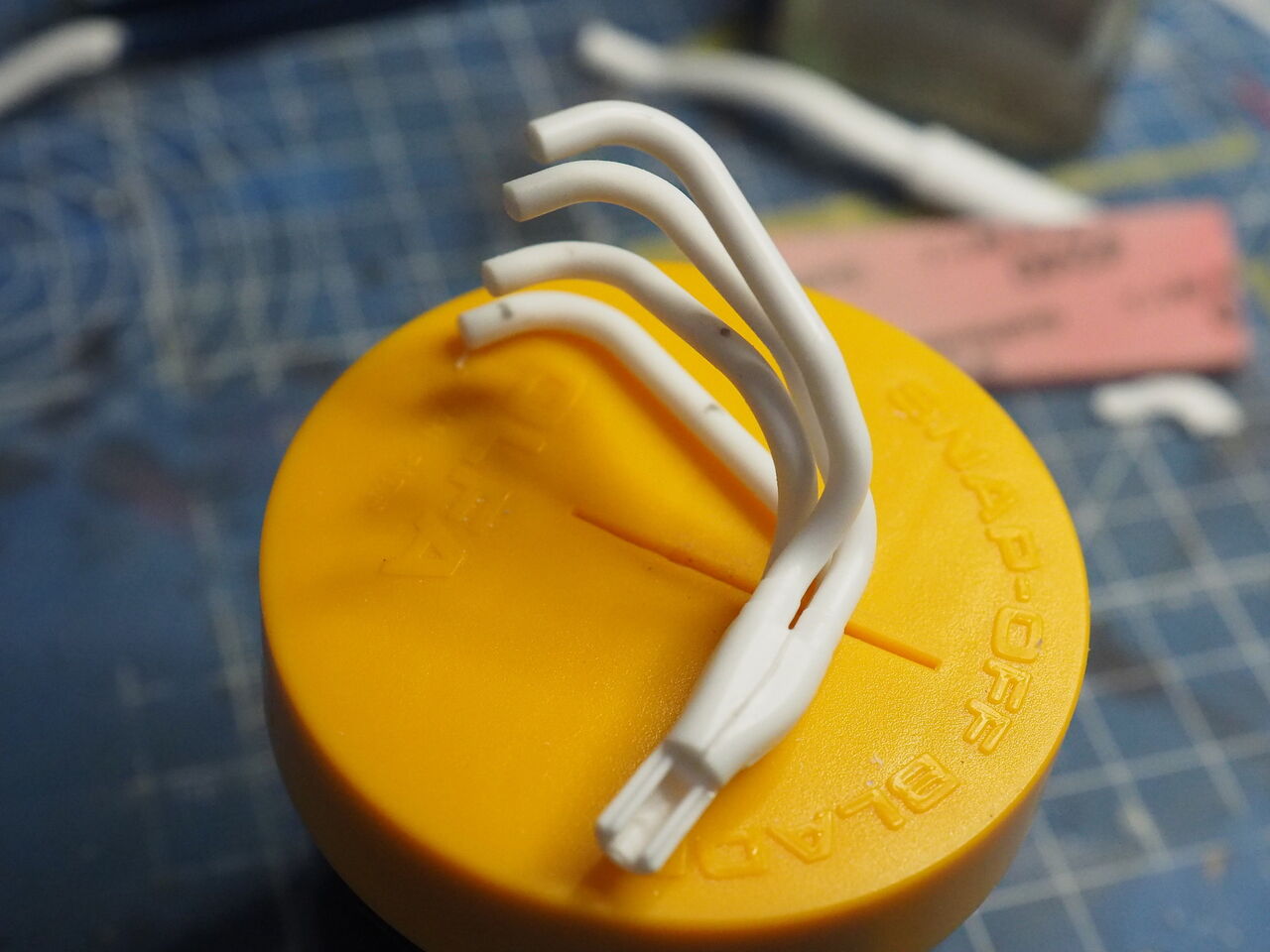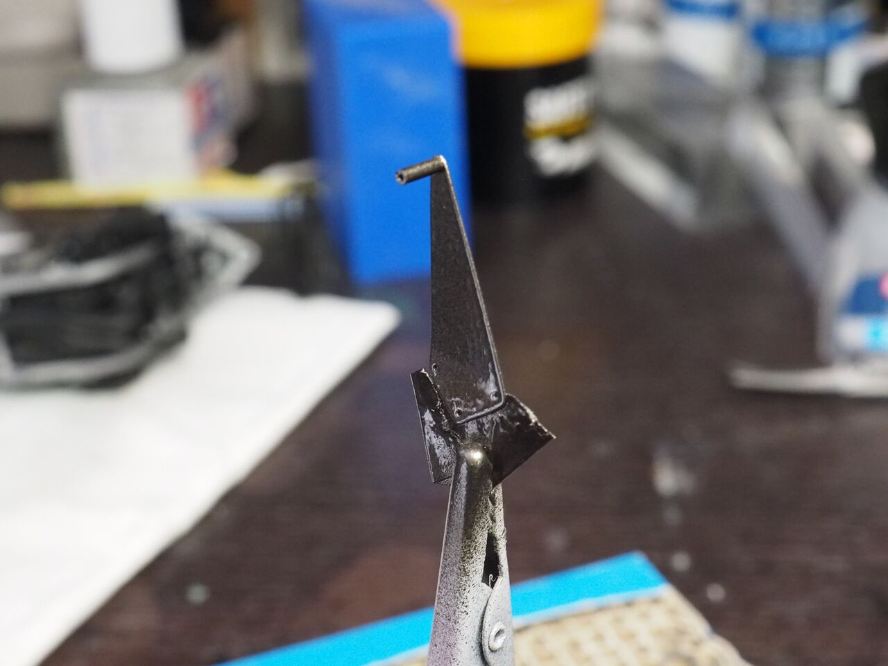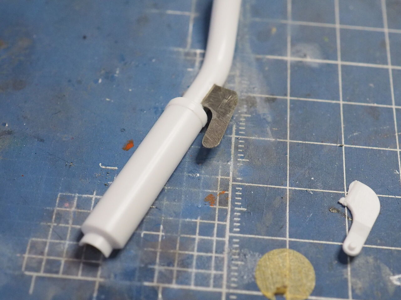 後方もさっきの金属板を挟めるようにプラ剤で溝を作って・・接着。