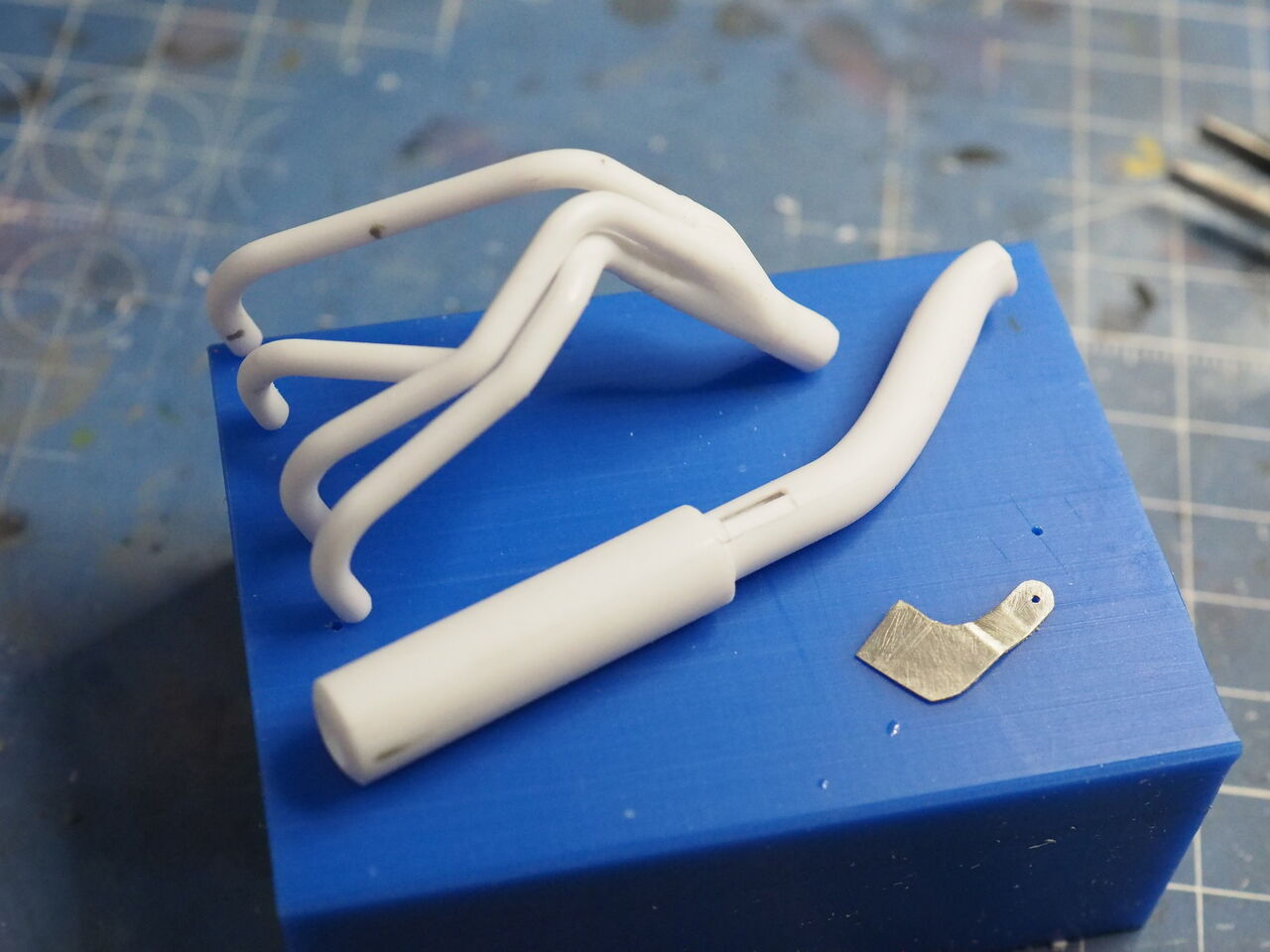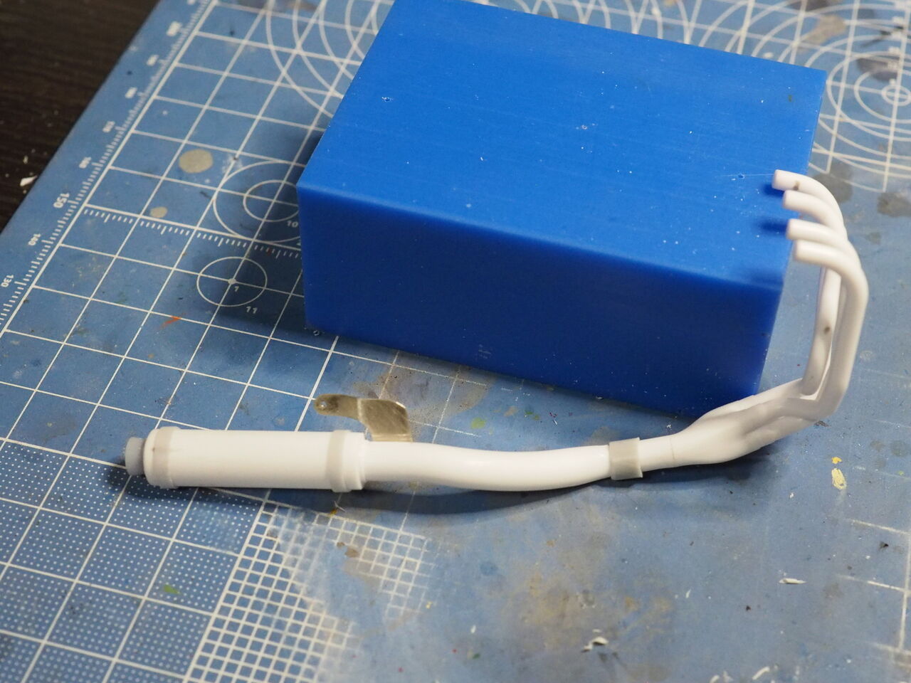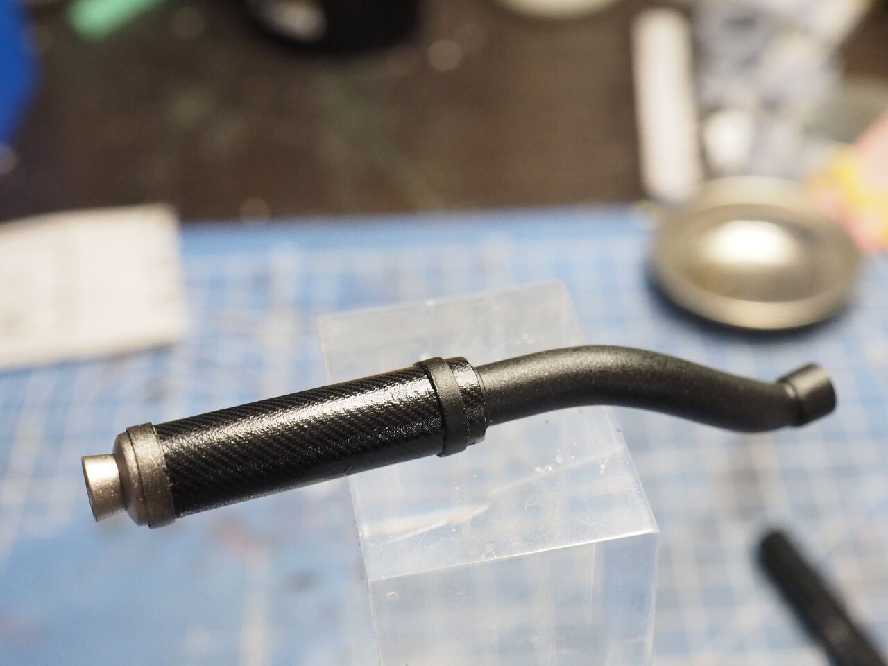 これでキットのパーツは整形し終わりました。マフラーは形状自体変えませんが排気口と・・・