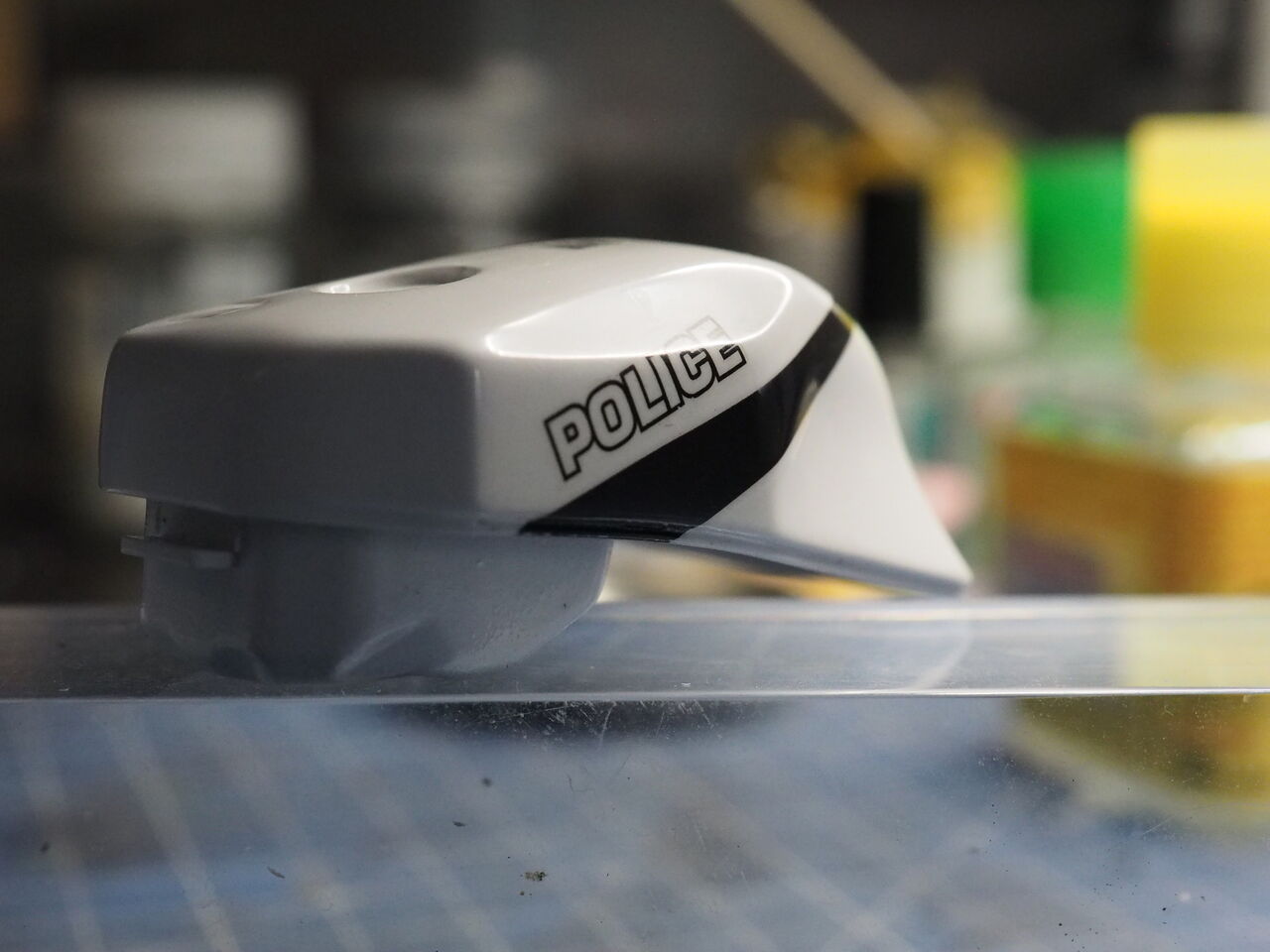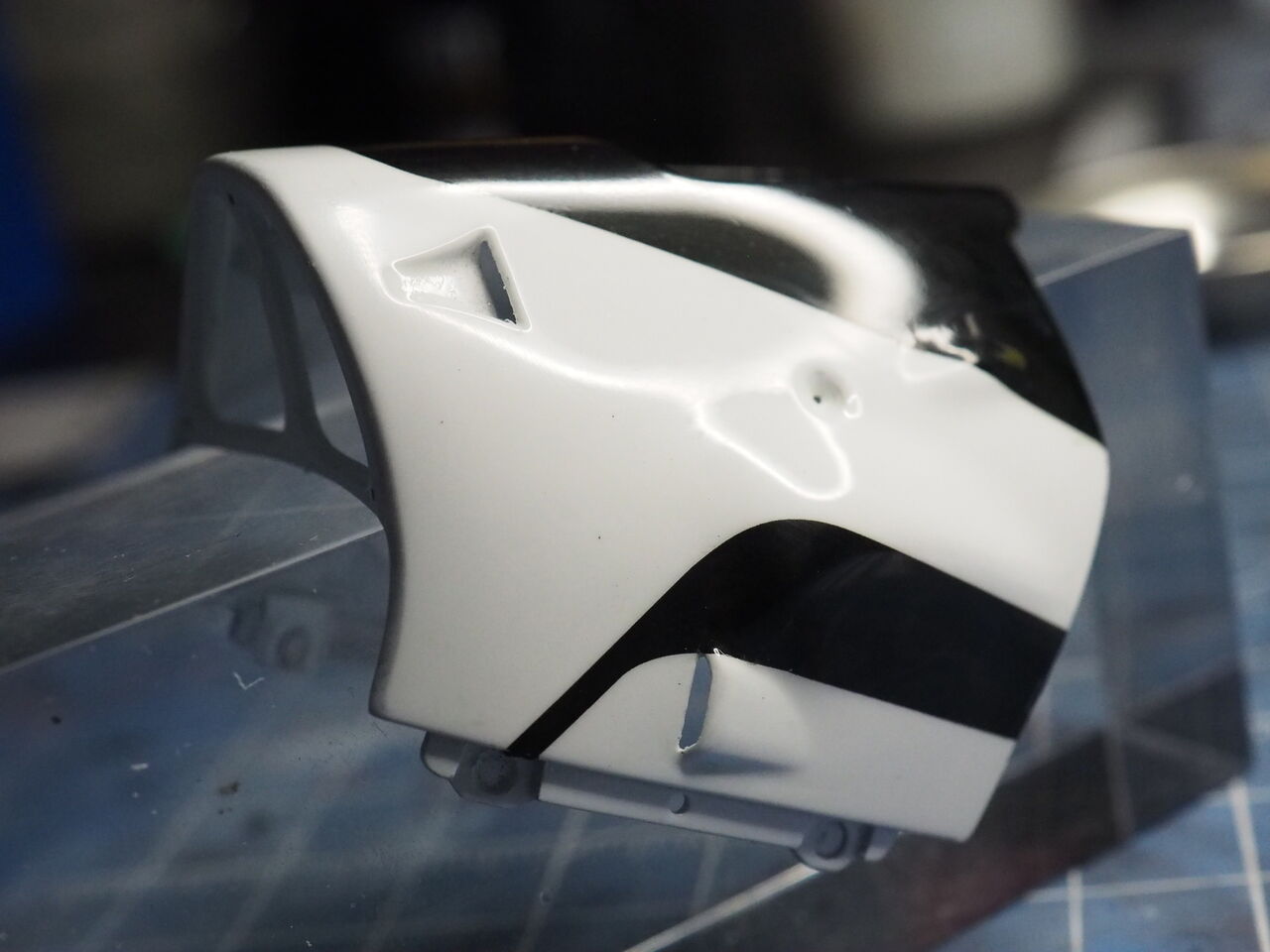タンクです。Pの文字の斜め下・・・黒い部分をやっちゃいました。黒がすこし薄く削れてしまった・・・。