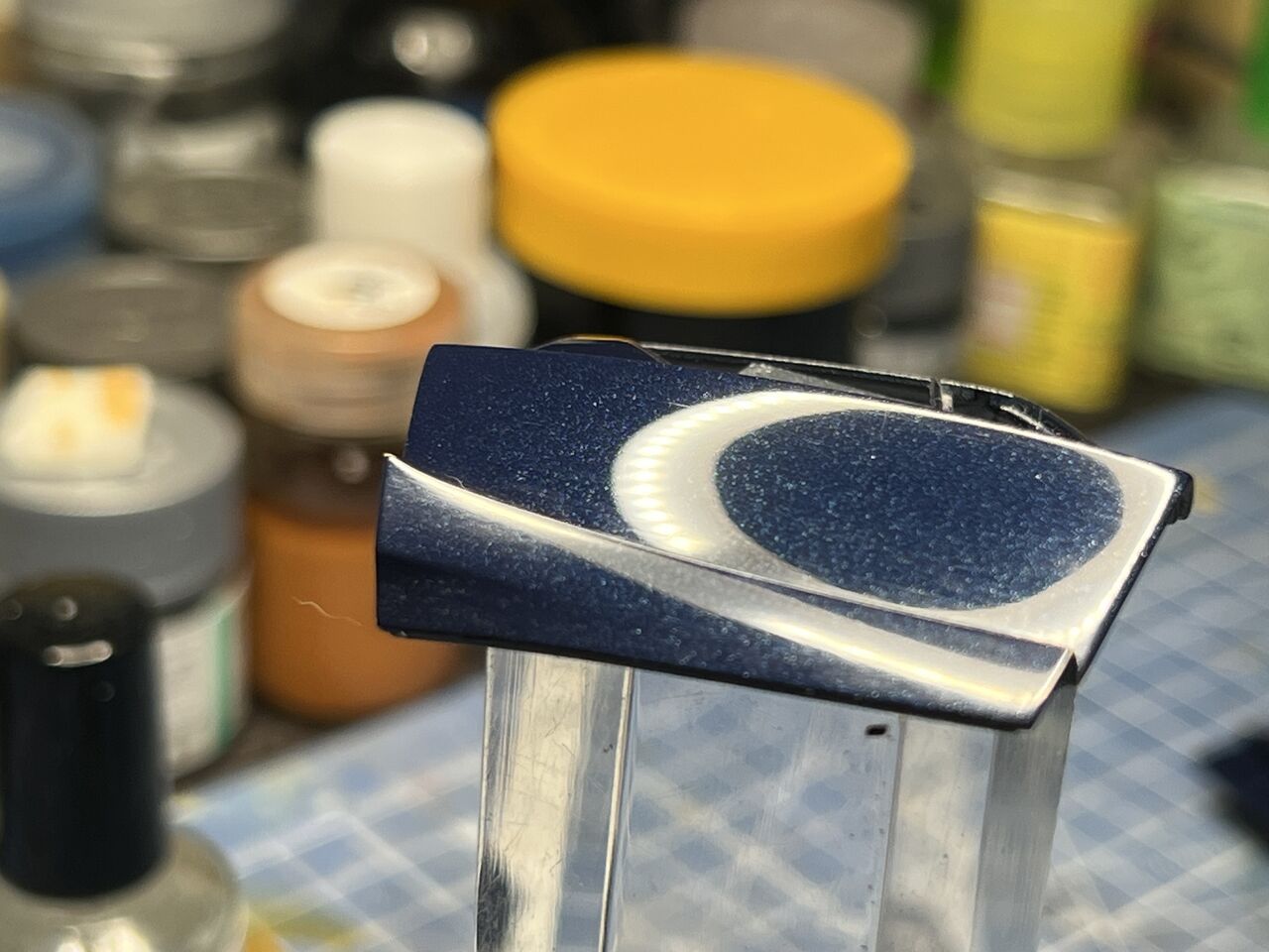 マスキングを剥がしておきます。生乾きのうちに剥がしておかないとパリパリめくれて・・・それはそれで面倒ですから・・・