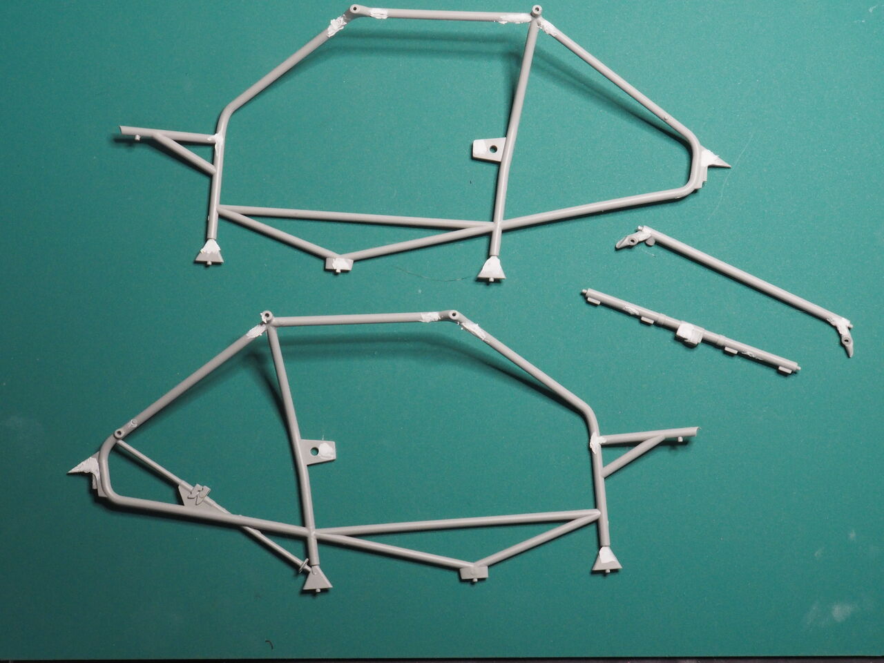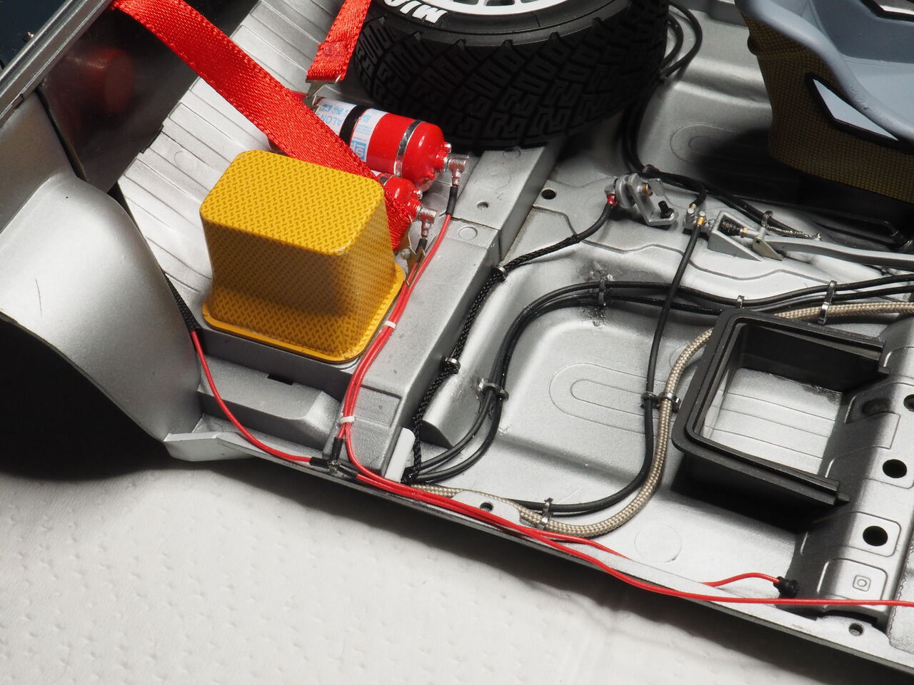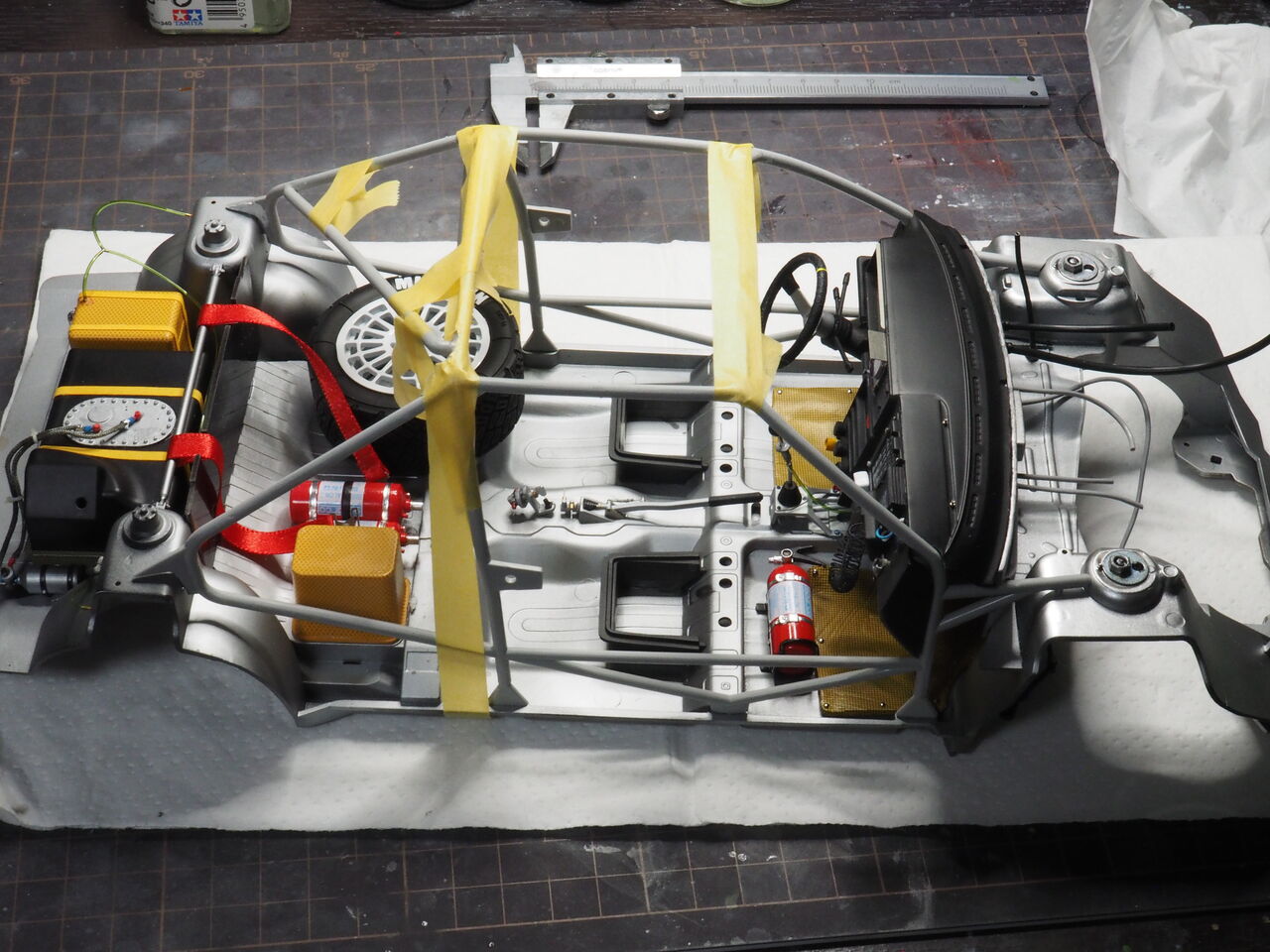 室内はパイピングを少しだけ行うのでそのあと接着します。次回はパイピングと一緒にロールバーも制作しましょう。