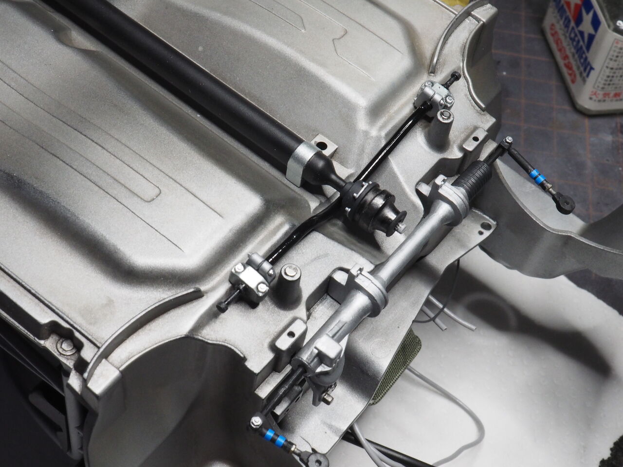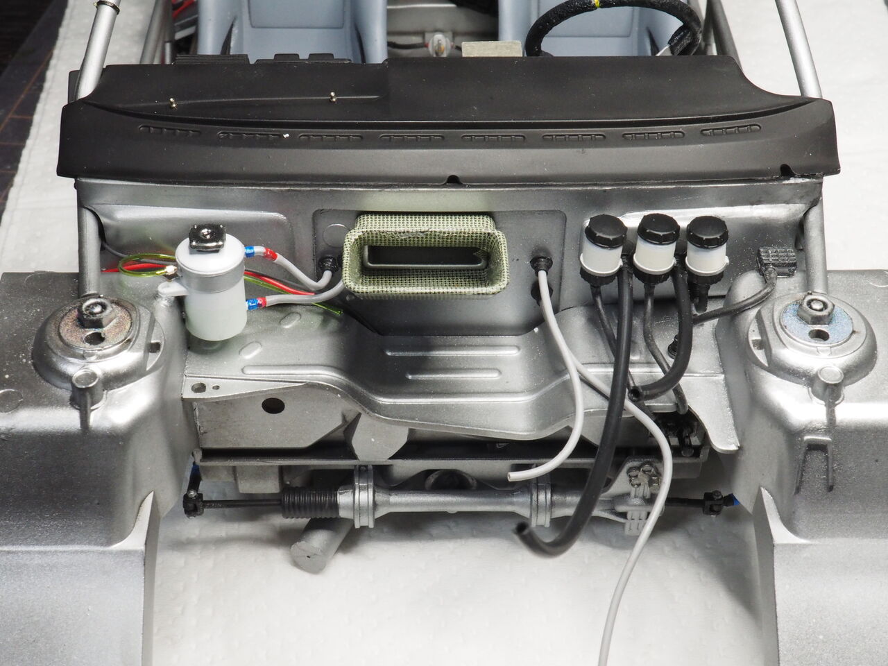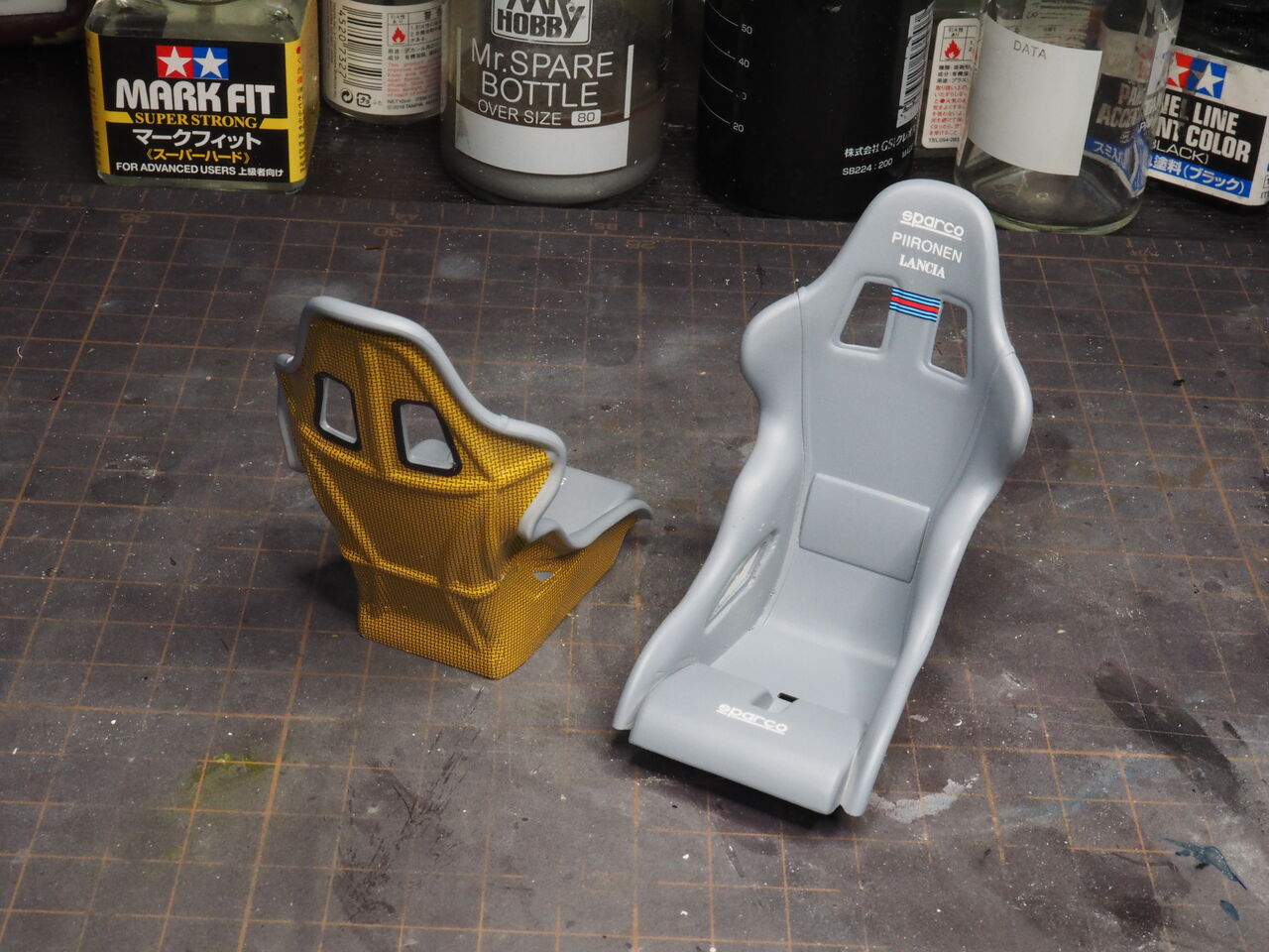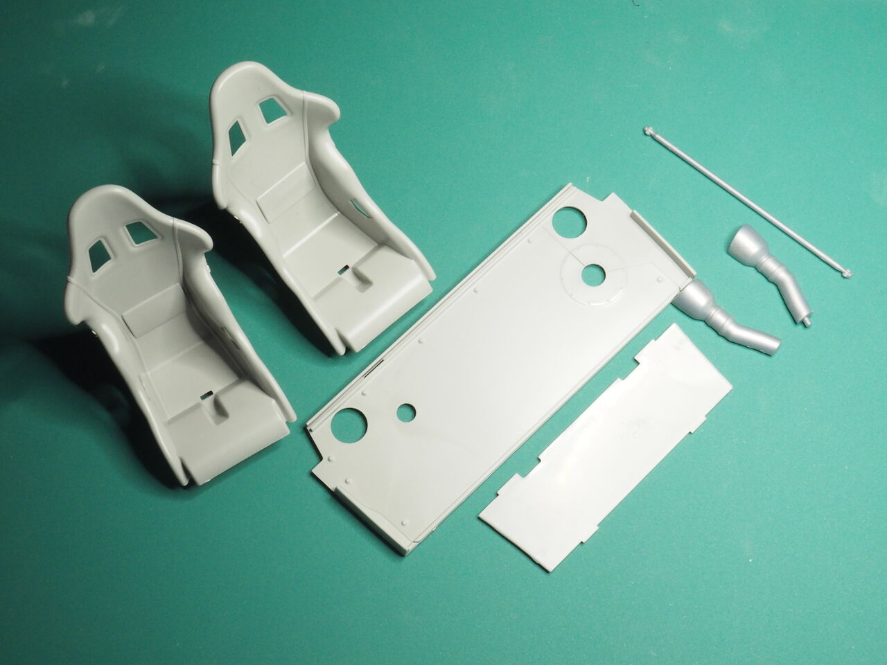 室内はパイピングを少しだけ行うのでそのあと接着します。次回はパイピングと一緒にロールバーも制作しましょう。
