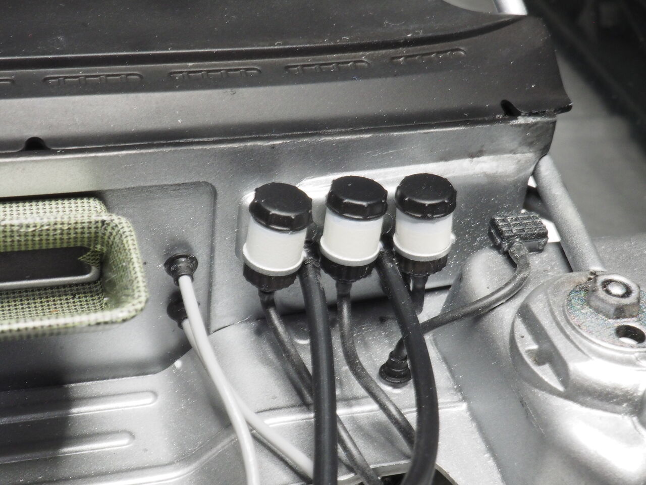 吸気口?はカーボンデカールで。実車はもっと黄色ぽいかんじでしょうか?。網がかぶっているのもあったので網を貼ろうか?とも思っています。
