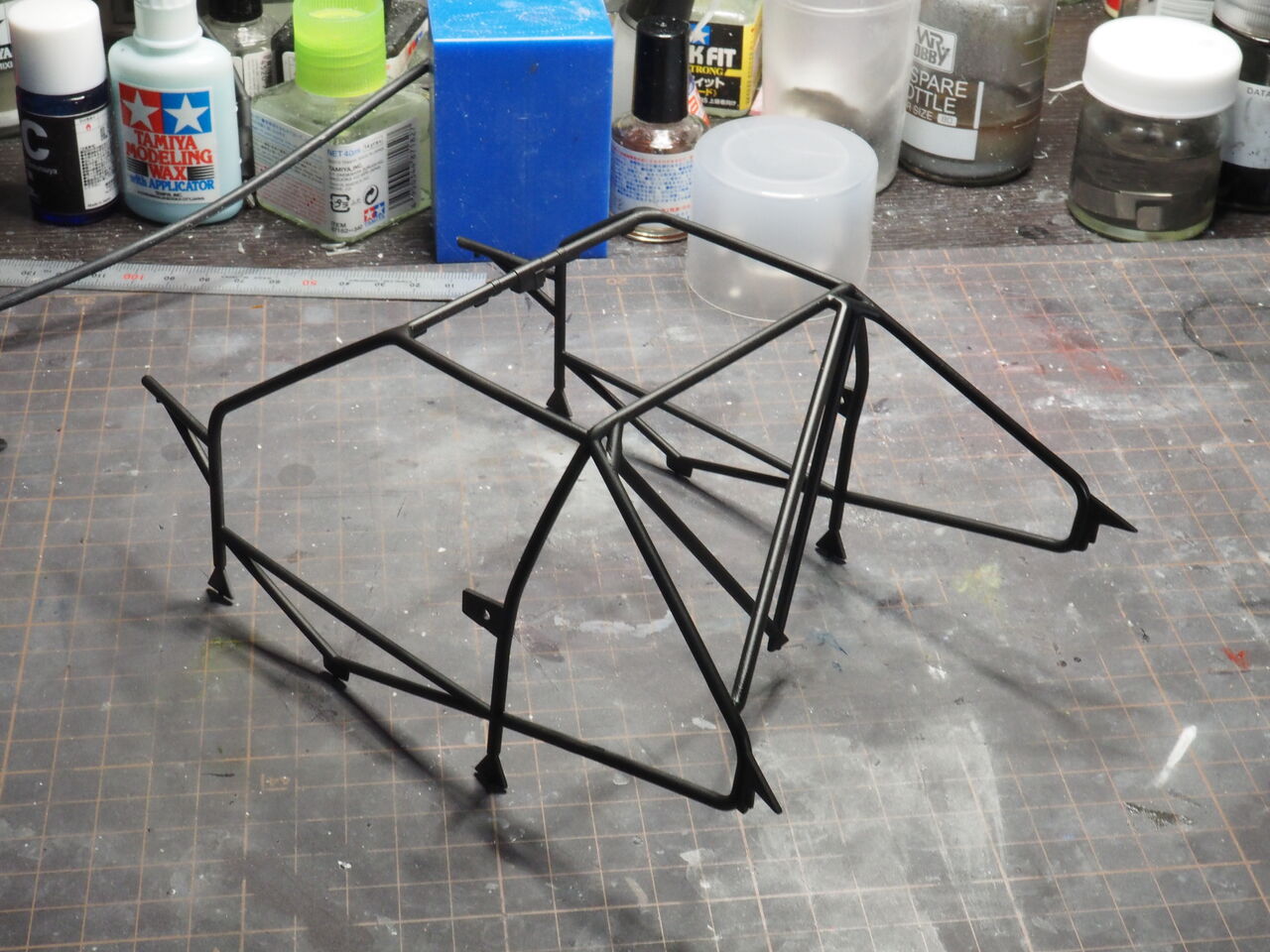 ロールバーとスペアタイヤの組立。そのまま内装の完成させましょう。