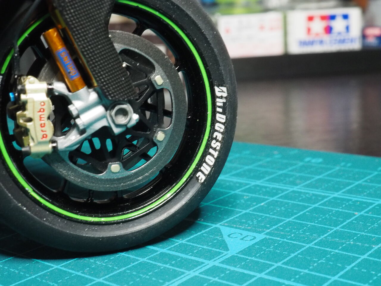 まぁ、完成ってことで・・・タイヤデカールも他のバイクから流用して誤魔化そうかとも思ったんですが大きさが合わずに断念・・・