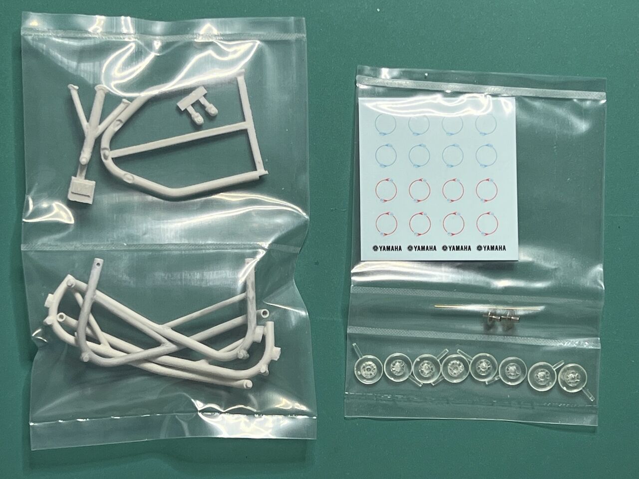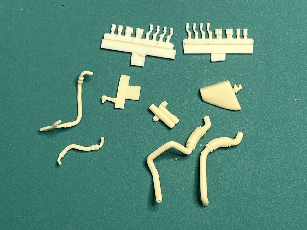 レジンパーツ1。マフラーにタンク、ラジエター?などでしょうか。
