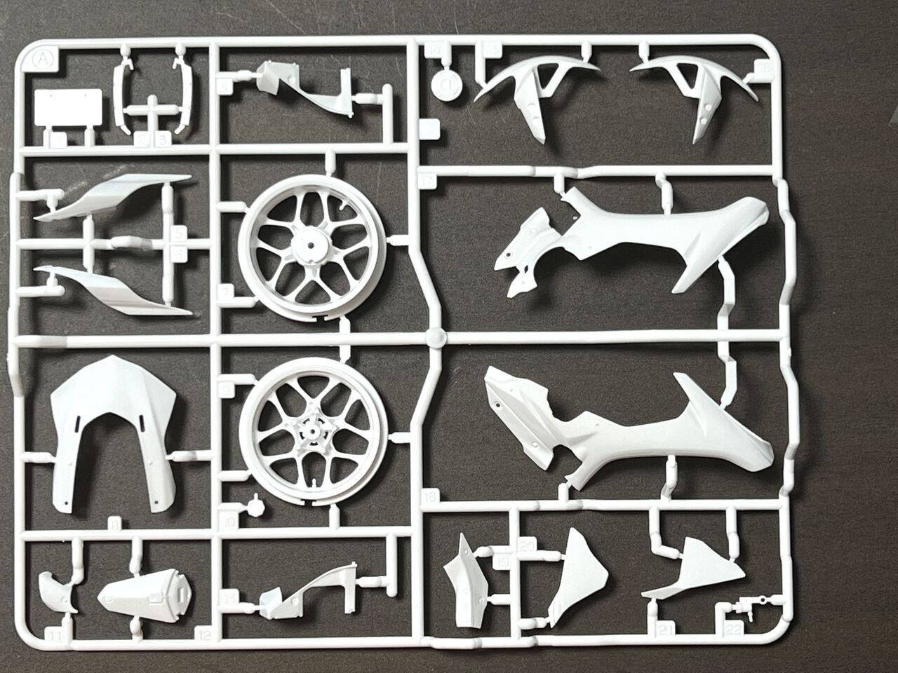今回選んだカラーリングも2019年8耐出場のファクトリーマシンから取られているようです。実車にオプションであるカラーではないですが、せっかく模型なのでお楽しみです。(300万円超の車種ですから模型でなきゃオリジナルカラーなんて塗れないですよね・・・)