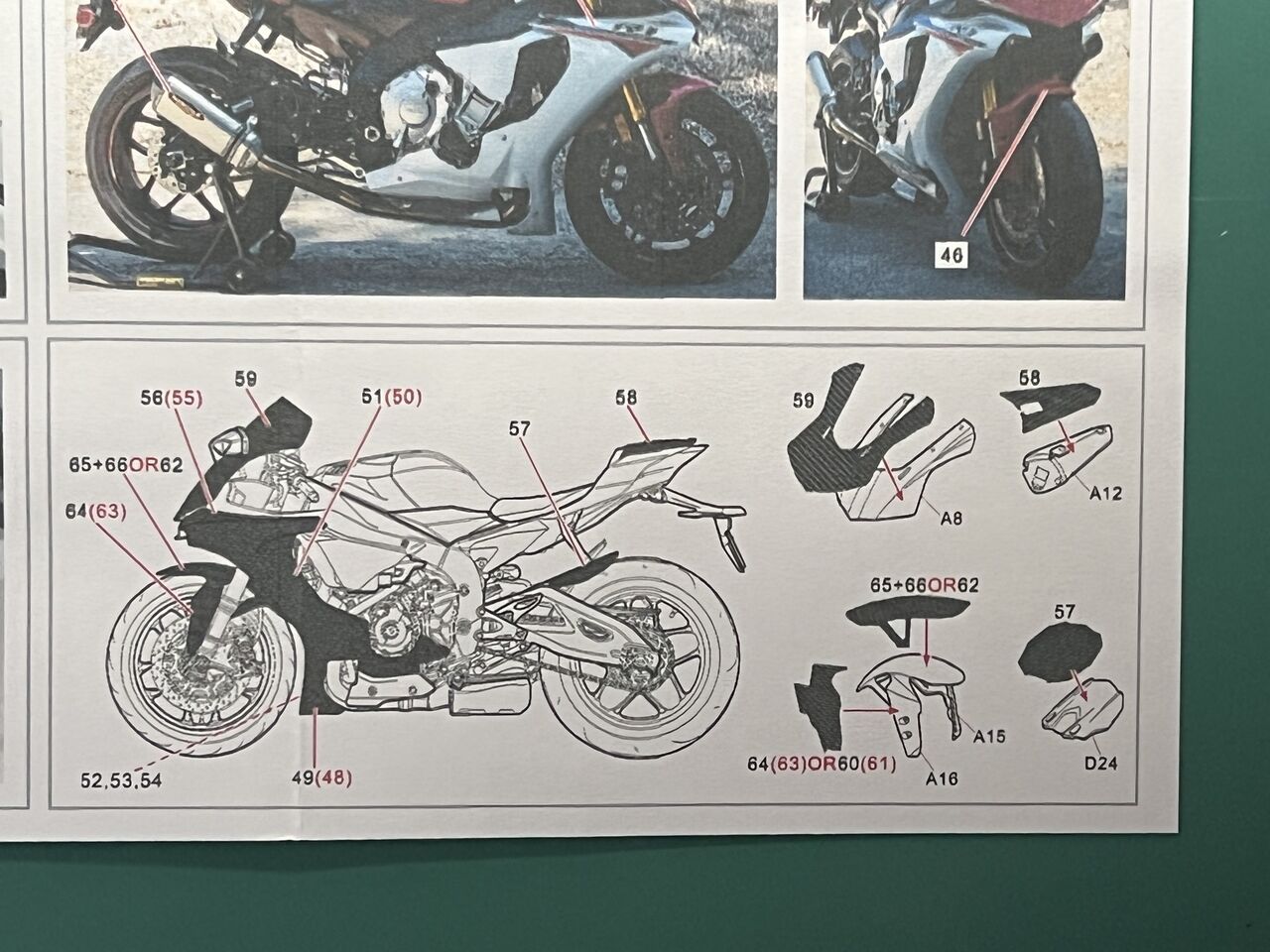 説明書1の裏。ブレーキ周りは細かいです。タンクは裏まで・・見えないですが・・・