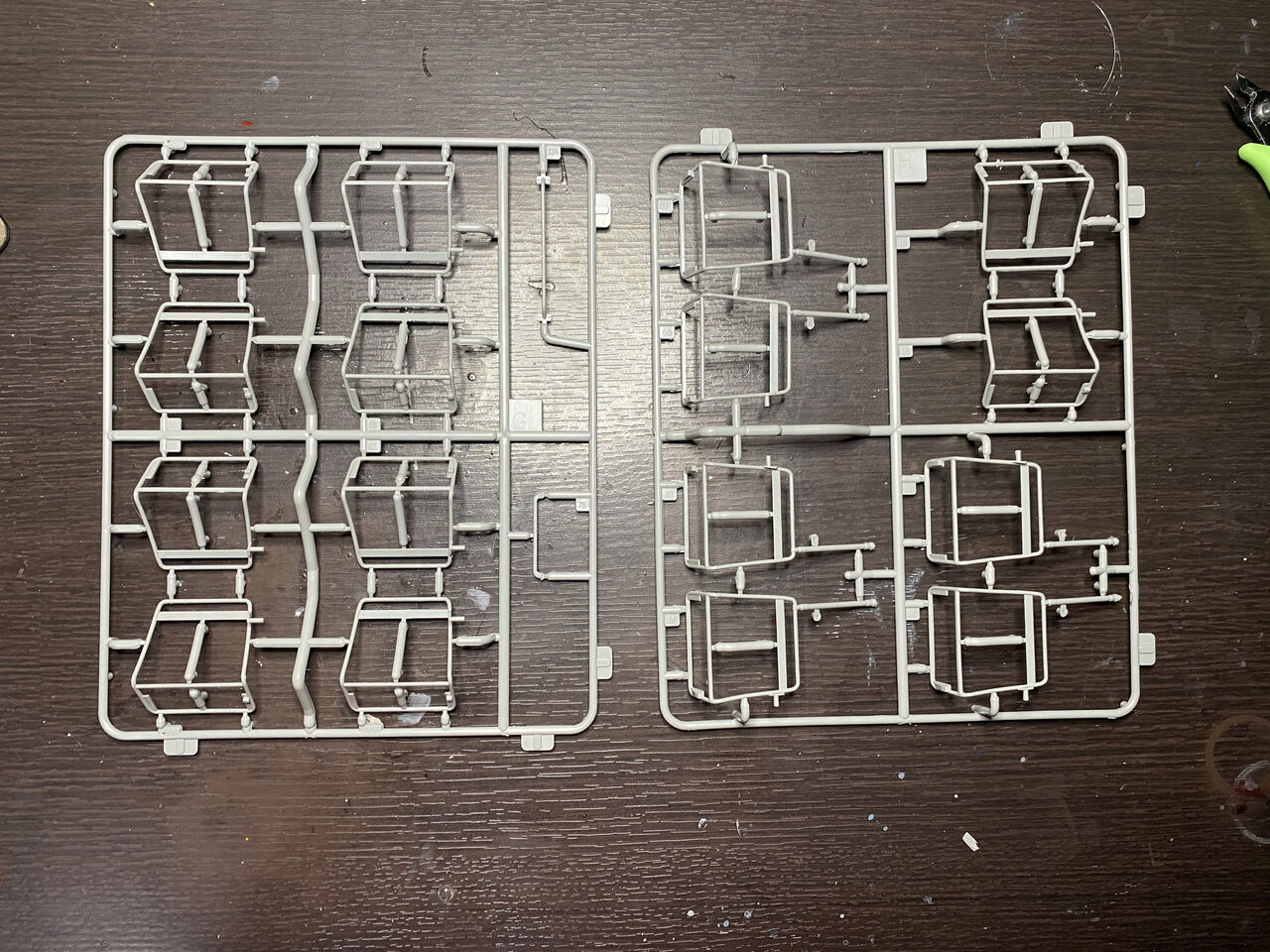 乗車席。すごい数ですね・・・上のランナーは席のフレーム。全部メッキです