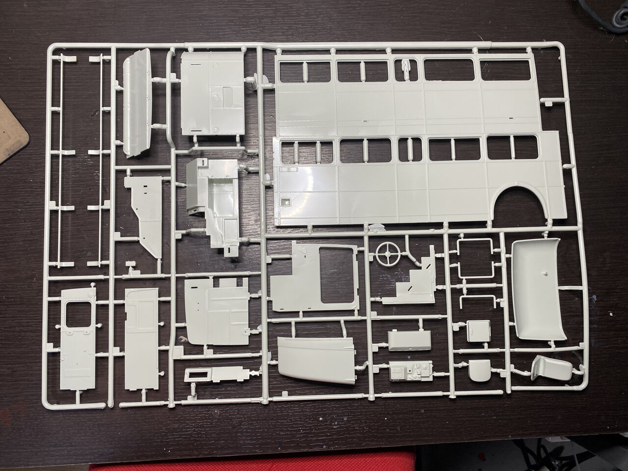 そしてその代名詞ともいえる「ルートマスター」がこのキットです。1953年に量産(コルベットC1と同じですね)1968年頃には3000台近くが稼働していたようです。2005年まで現役で動いていました。半世紀同じバスってすごいですね・・