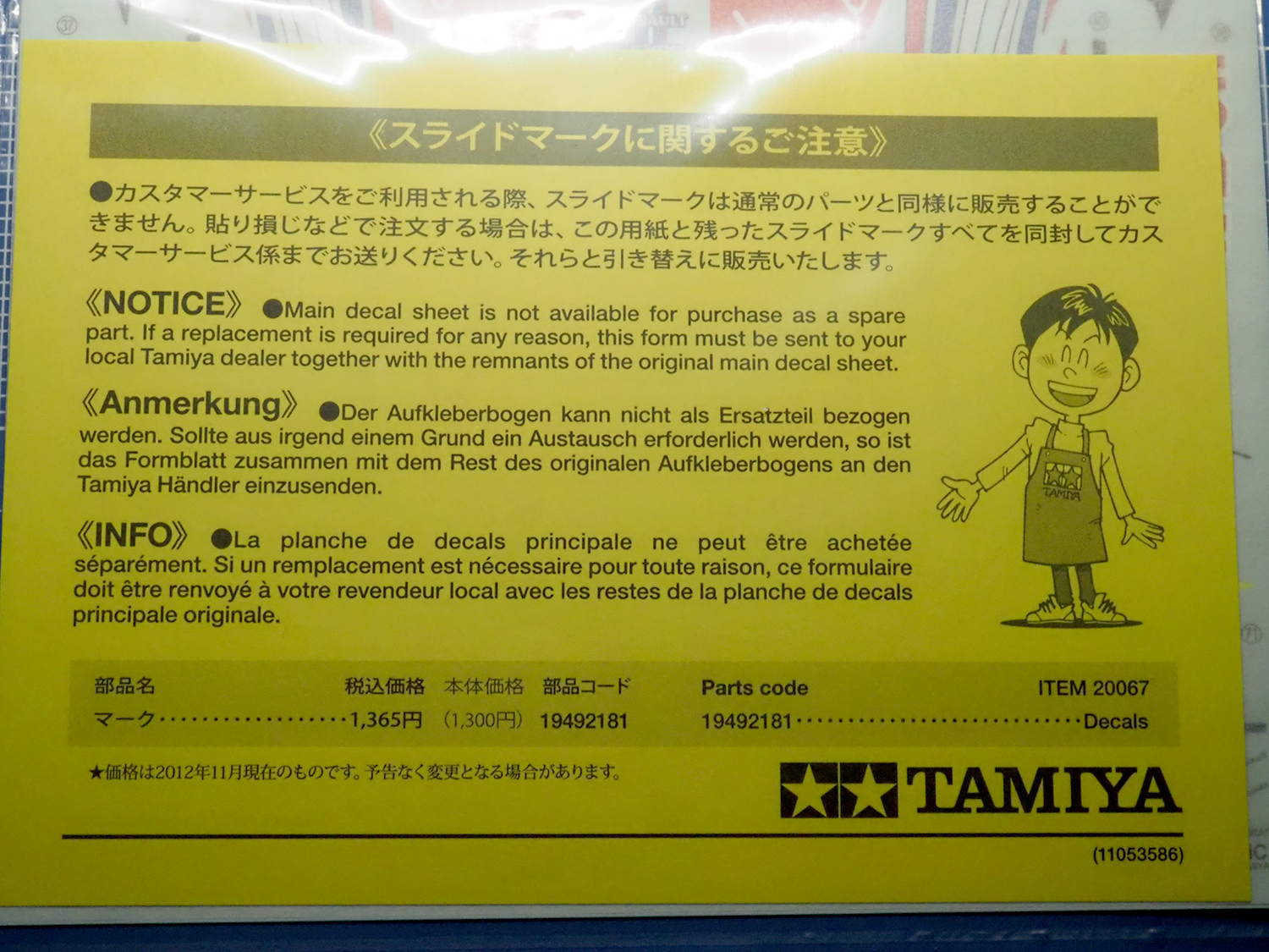 設計図とタミヤさんならではのウンチク(中面はデカール指示です)