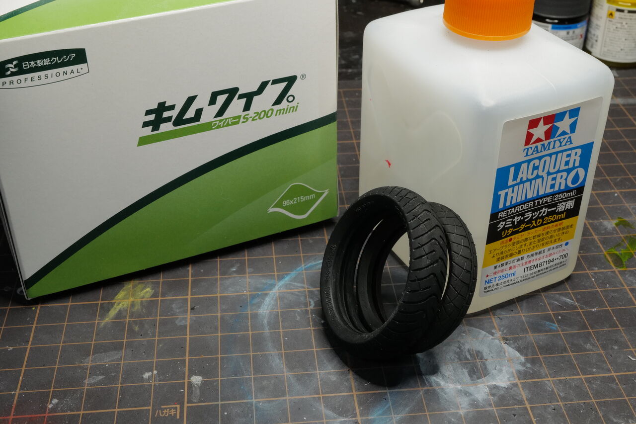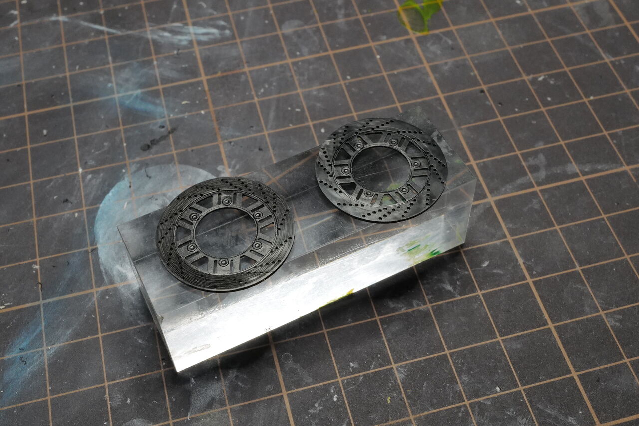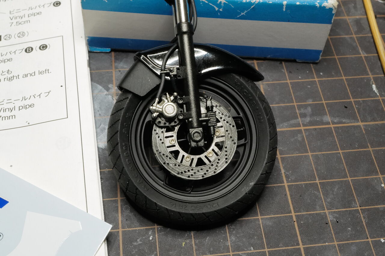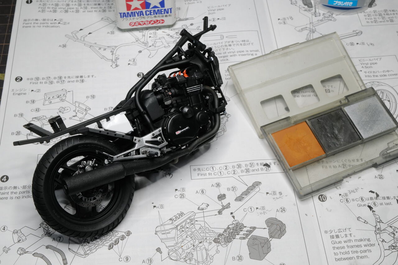 ブラック塗装。今回のブラックはアルクラッドのグロスブラック。本来は金属色の下地用ですが隠蔽力が強く、軽く塗っても綺麗にツヤが出るのでとても使いやすいです。