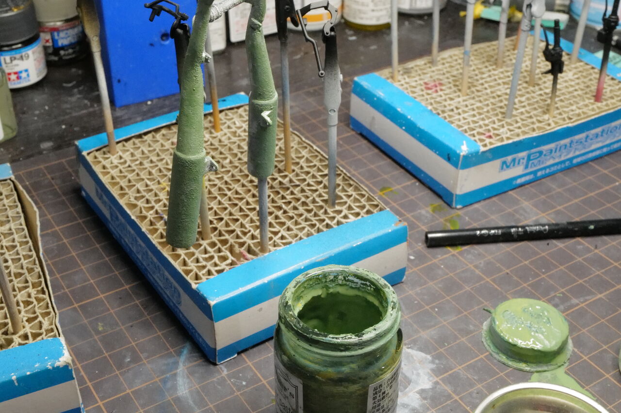 黒色以外の色を入れて「模型的なメリハリが出るといいなぁ」くらいで塗ったんですけど、組んでみると良いかんじになってくれたらいいですね・・・